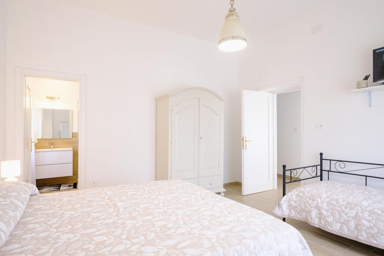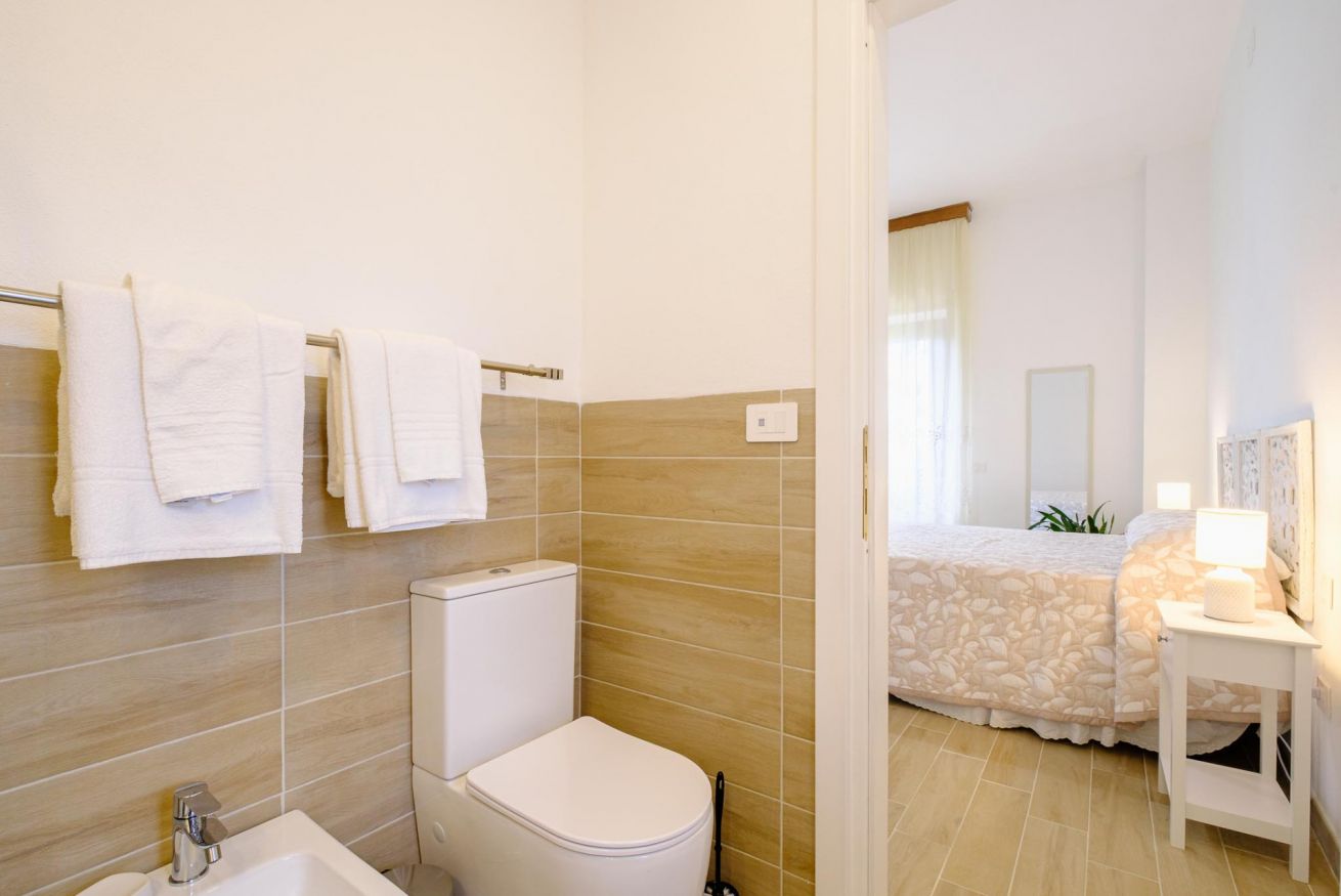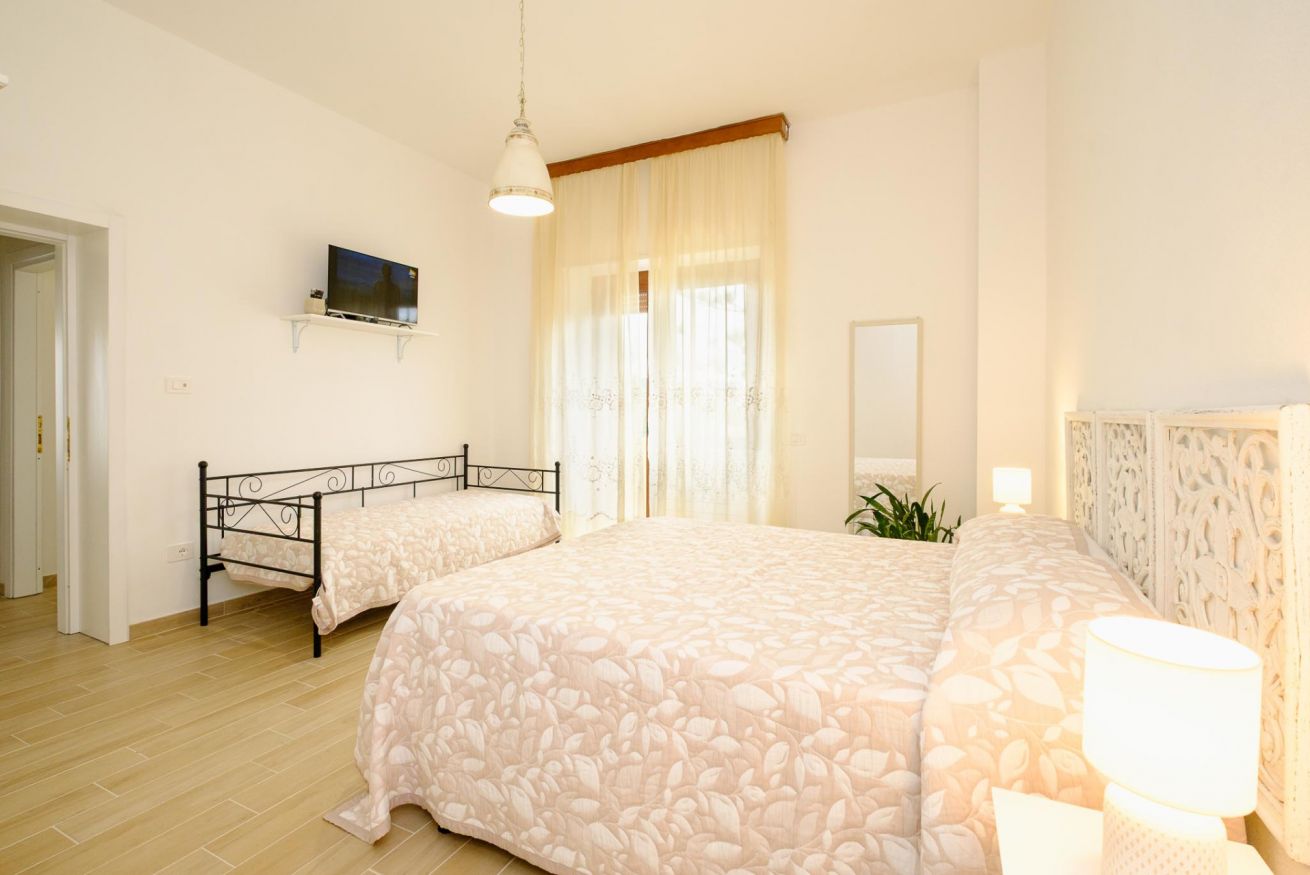 Ampia camera matrimoniale + letto singolo, bagno privato in camera e veranda privata.